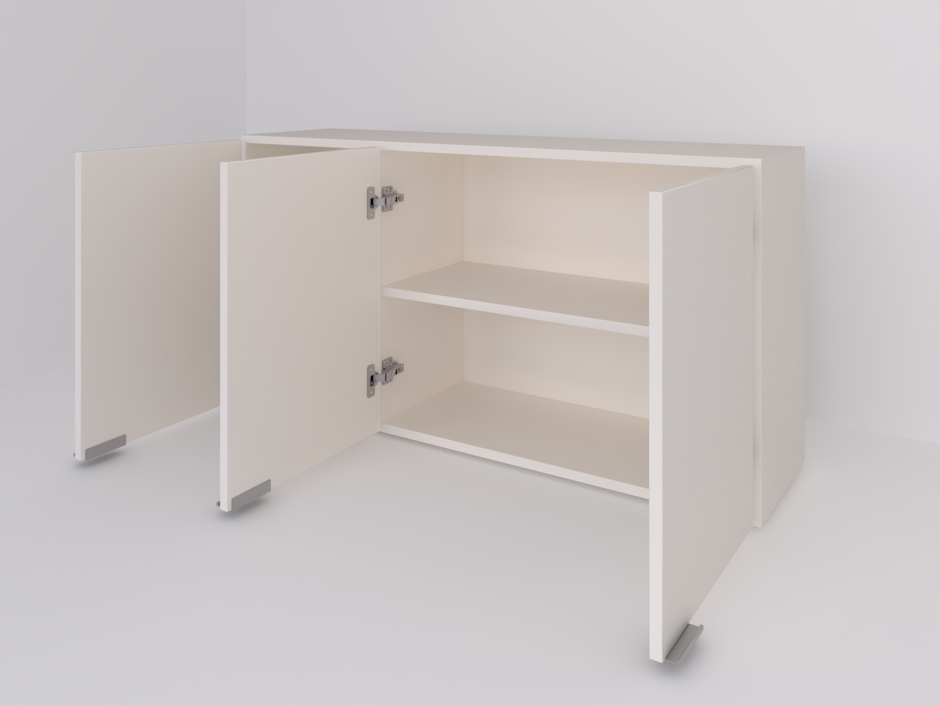Alacena realizada en melamina 18mm, herrajes metálicos, estantes internos.